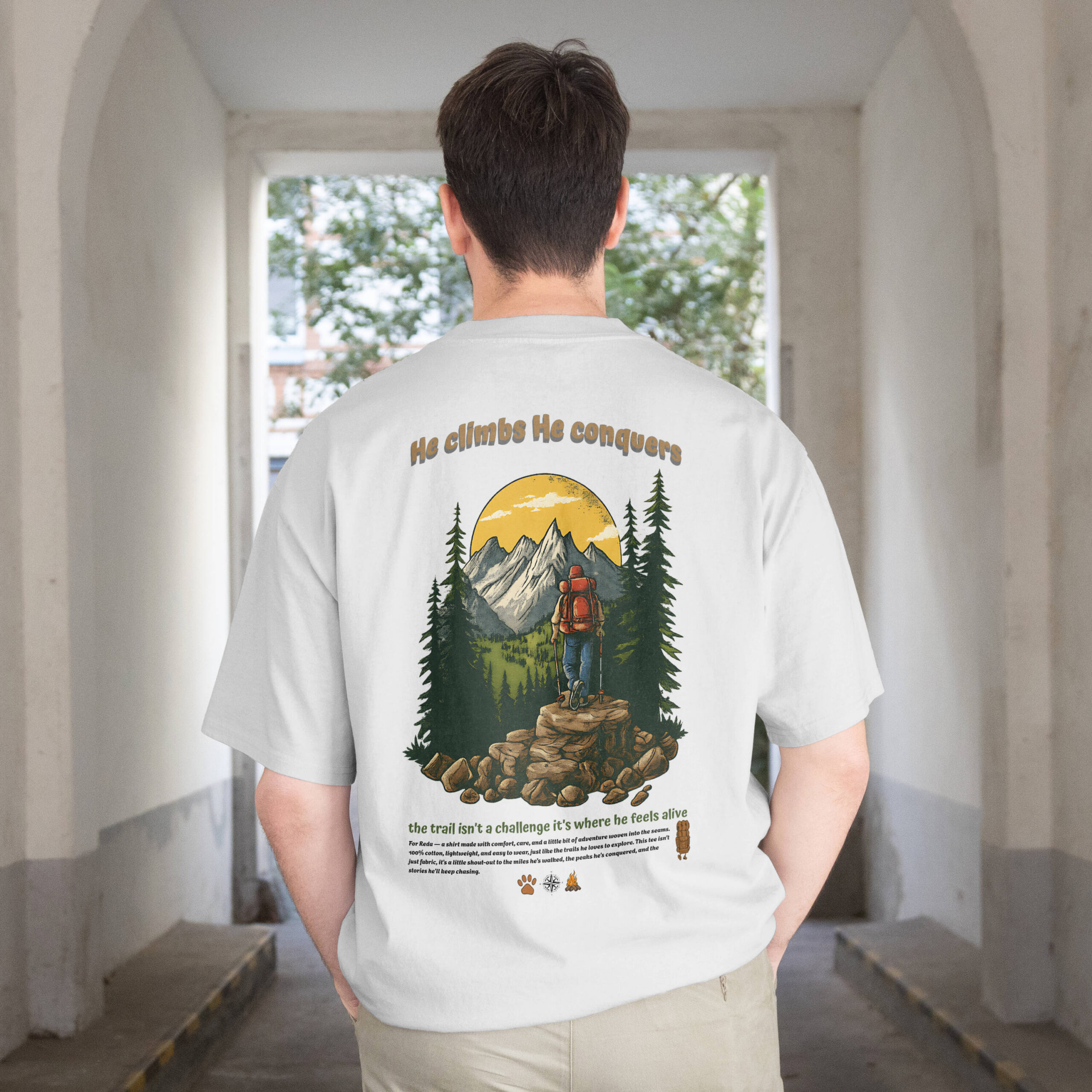 Made To Wander, High Quality DTF Printed T-shirt With Hiking Theme In The Back